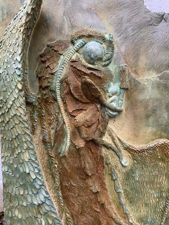 My sculptures take form as large hand made insects and invertebrates that often possess anthropomorphic features. These figures are then cast in cement and coloured using handmade stains, to create the effect of giant fossilised creatures.