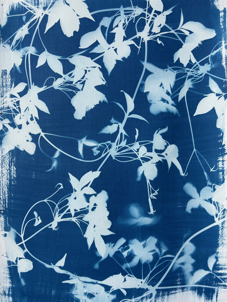Danielle is an artist who lives on the North Norfolk coast, whose practise focuses on the creation Cyanotypes; a simple photographic process using sunlight to create a distinctive Cyan blue and white image. Seeking inspiration from the Norfolk countryside and coastline, incorporating living artefacts – plants and found objects – from the local landscape. Working with the seasons, growing plants, foraging for subject matter and primarily using the Sun to create her artworks.