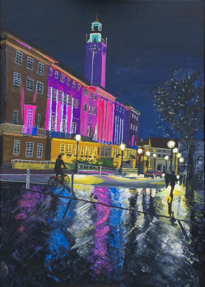 Peter Anthony James is a Norfolk-based artist specialising in vibrant, atmospheric depictions of the landscapes and street scenes he has encountered locally or on his travels. Many of the paintings feature scenes in Norfolk and Suffolk as well as Hertfordshire where he has lived previously. He is also drawn to capturing the feel of London and in particular the rich mix of old and new buildings in the redeveloping parts of the city such as Kings Cross. ​​His work often starts off as in-situ sketches and develops into acrylic paintings on canvas or canvas board, often quite large in scale. Sometimes they develop into watercolour paintings instead or just remain ink and wash sketches.